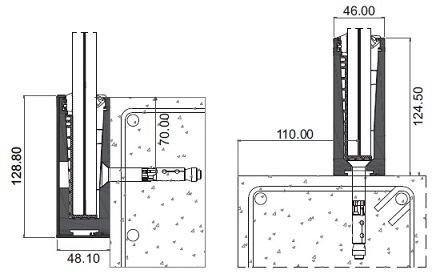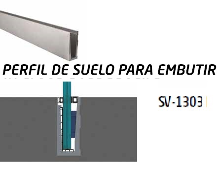 - Serie SV-1303 para embutir en el suelo y permite que la barandilla de vidrio pueda soportar cargas horizontales de hasta 1 kN y con vidrios de espesor de 12 a 21,52 mm
