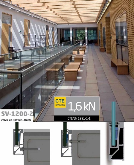- Serie SV-1200-2 que permite que la barandilla de vidrio soportecargas de hastas 1,6 KN para vidrio desde 12 a 21,52 mm