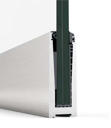 - Barandillas de vidrio sujetadas mediante Perfil de suelo montaje superior. Se trata de un perfil de aluminio, o también de acero inoxidable 304 (para interiores) o 316 (para exteriores). La calidad del hormigón debe ser comprimido y traccionado. Existen varias versiones, dependiendo de su resistencia que deba soportar la barandilla de vidrio a una carga de presión horinzontal. Disponemos de las siguientes series: