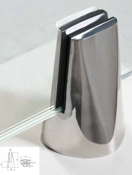 - Pinza 6400, sistema para sujetar barandillas de vidrio al suelo, soporta cargas de hasta 1,6 kN y para vidrios de espesor desde 16 a 21,52 mm. de 174 mm de altura,Realizada en acero inoxidable 316 válida para exteriores.