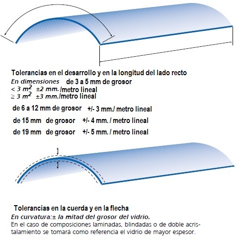 A la hora de cursar un pedido se deben facilitar como mínimo los siguientes parámetros: La altura del vidrio, el espesor del vidrio y al menos dos de los datos siguientes: radio, desarrollo, cuerda y flecha. |