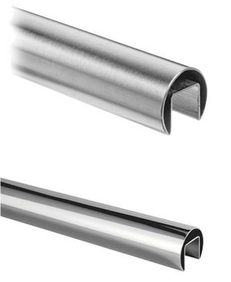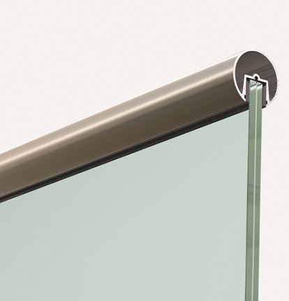 | perfil superior RP1400 de Acero INOX 304, redondo de 42,4 mm de diametro para vidrios desde 8 a 21,52 mm sujetado con goma. | Perfil superior SV1250 Alumnio Anodizado, rectangular sujetado con cinta doble cara y en 3 tamaños para 3 grosores de vidrio : 12, 16 y 20 mm | |