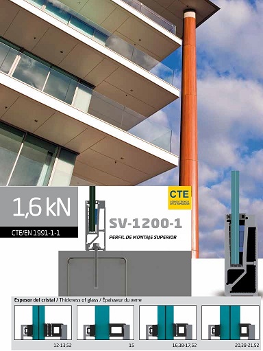 - Serie SV1200-1, hasta 1,6 kn y espesores de vidrio de 12 a 21,52 mm